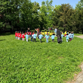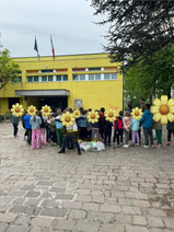 Grazie bambini e maestre che, dopo la raccolta, tutti in cerchio avete anche cantato ad Elena e a me la vostra canzone per salutarci!