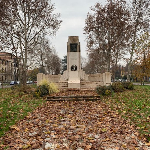 Il monumento di Luigi Buffoli liberato dalle foglie d’autunno.